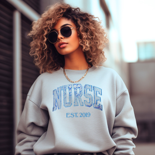 Sequin Glitter LPN Nurse Embroidery Sweatshirt