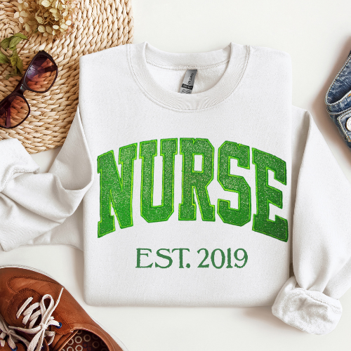Green Nurse Embroidery Crewneck