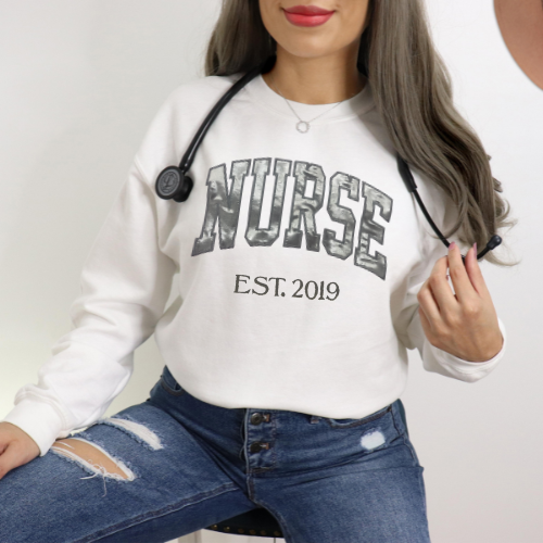 Sequin Glitter Nurse Embroidery Sweatshirt