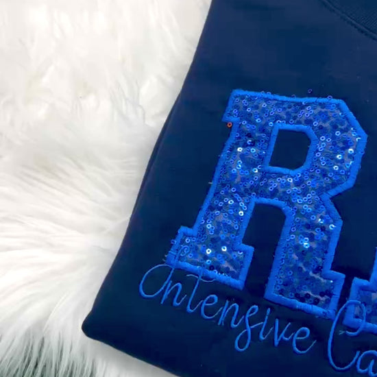 Each pullover features intricate customization sleeve embroidery in bold, cute thread, adding a touch of glamour to your everyday wardrobe. One personalized sleeve detail included with each nurse trendy pullover crewneck. Follow instructions to order below! Whether you're rocking it during your shift or lounging at home, this popular pullover jersey is guaranteed to turn heads and spark top conversations amongst fellow Nurses.