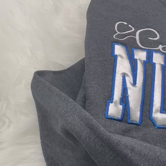 Each pullover features intricate customization sleeve embroidery in bold, cute thread, adding a touch of glamour to your everyday wardrobe. One personalized sleeve detail included with each nurse trendy pullover crewneck. Follow instructions to order below! Whether you're rocking it during your shift or lounging at home, this popular pullover jersey is guaranteed to turn heads and spark top conversations amongst fellow nurses.