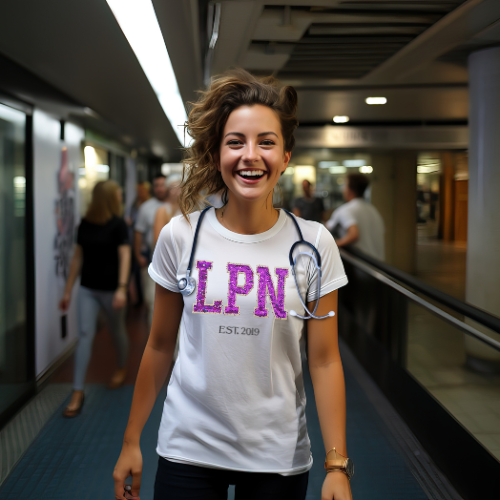 A design where bold style meets feminine flair. This eye-catching t-shirt features the large letters "NURSE" in a stunning faux glitter sequin pattern, giving it a glamorous and trendy appearance. Made from premium, soft cotton, it provides all-day comfort whether you're on a shift or enjoying your day off. Perfect as a gift for nursing students, recent graduates, or seasoned professionals, this t-shirt is designed to celebrate and empower. Available in multiple colors, this top-rated tee is a standout addition to any nursing wardrobe.